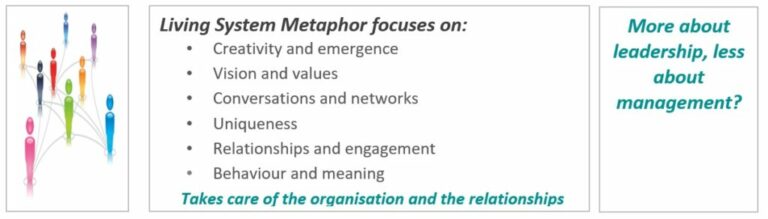 In the wake of the industrial revolution and the beginnings of large-scale manufacturing and production perhaps this was helpful. In the complex ever shifting environment that is the world of work today, the idea of the organisation as a living system with emotions, feelings and the capacity to change, adapt and re-invent is also useful.